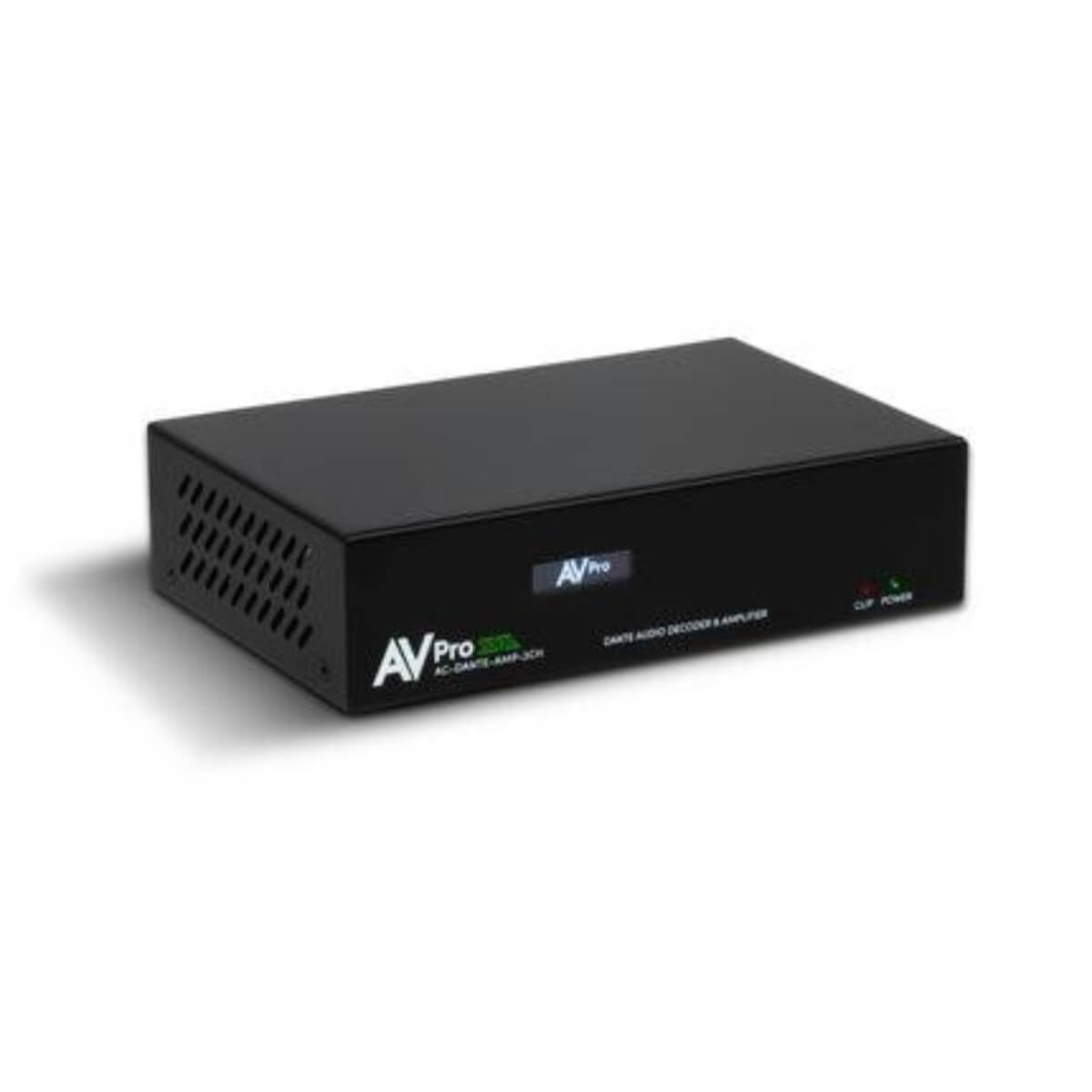 The AC-DANTE-AMP-2CH is a combination 25W/RMS (@4 Ohm, 12.5 W/RMS @ 8 Ohm ) 2-channel local audio power amplifier and Dante Audio/AES67 decoder, supporting sampling rates of 44.1kHz, 48kHz, 88.2kHz, and 96kHz with 16-, 24-, and 32-bit word lengths encoded as either the Dante audio or AES67 format. Encrypted Dante audio information is input via the designated Dante Audio network RJ45 network port, undergoes decoding from Dante digital into analog, and outputs a speaker-level signal from a pair of secured, 2-pin terminal block connectors, plus line-level audio by way of a 5-pin terminal block connector.