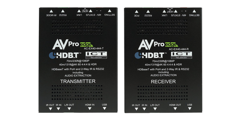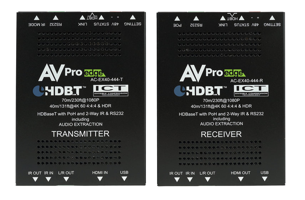 Presenting the AVPro Edge AC-EX40-444-KIT as an 18Gbps 4K60 HDMI to HDBaseT range extender kit. This range extender delivers a virtually lossless high bandwidth 4K HDR signal with support for all signals up to 18Gbps. Deep Color and HDR Metadata remain intact making the transmission free of artifacts like banding.