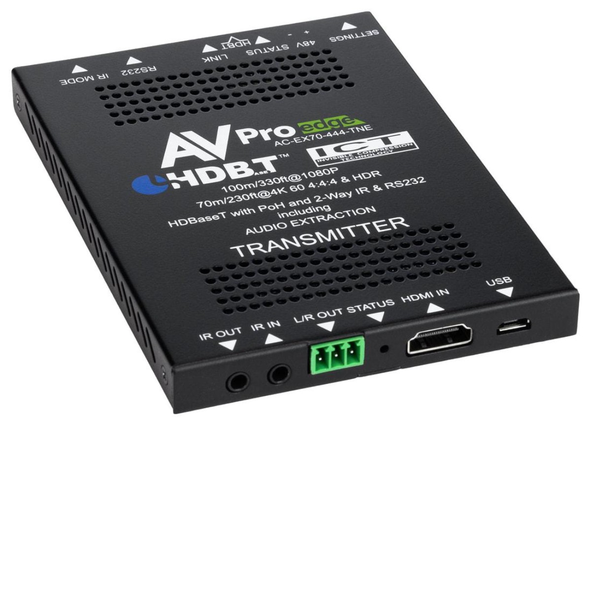 AVPro Edge’s 70-meter 4K transmitter can support long-distance runs of high bandwidth data signals over standard category cable. Professional AV installers will use this device anytime they need to send HDMI signals long distances. This device will convert the HDMI signal into an HDBaseT type that distributes uncompressed video data through walls and underground to areas that are not easily reached.