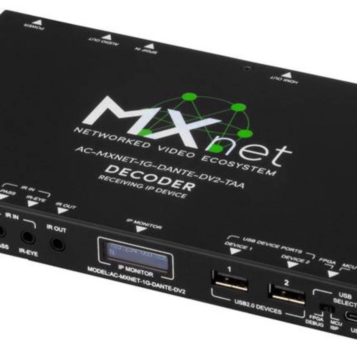 The AC-MXNET-1G-DANTE-DV2-TAA is the TAA-compliant version of the AC-MXNET-1G-DANTE-DV2 Decoder. It maintains all the features and capabilities of the original AC-MXNET-1G-DANTE-DV2.