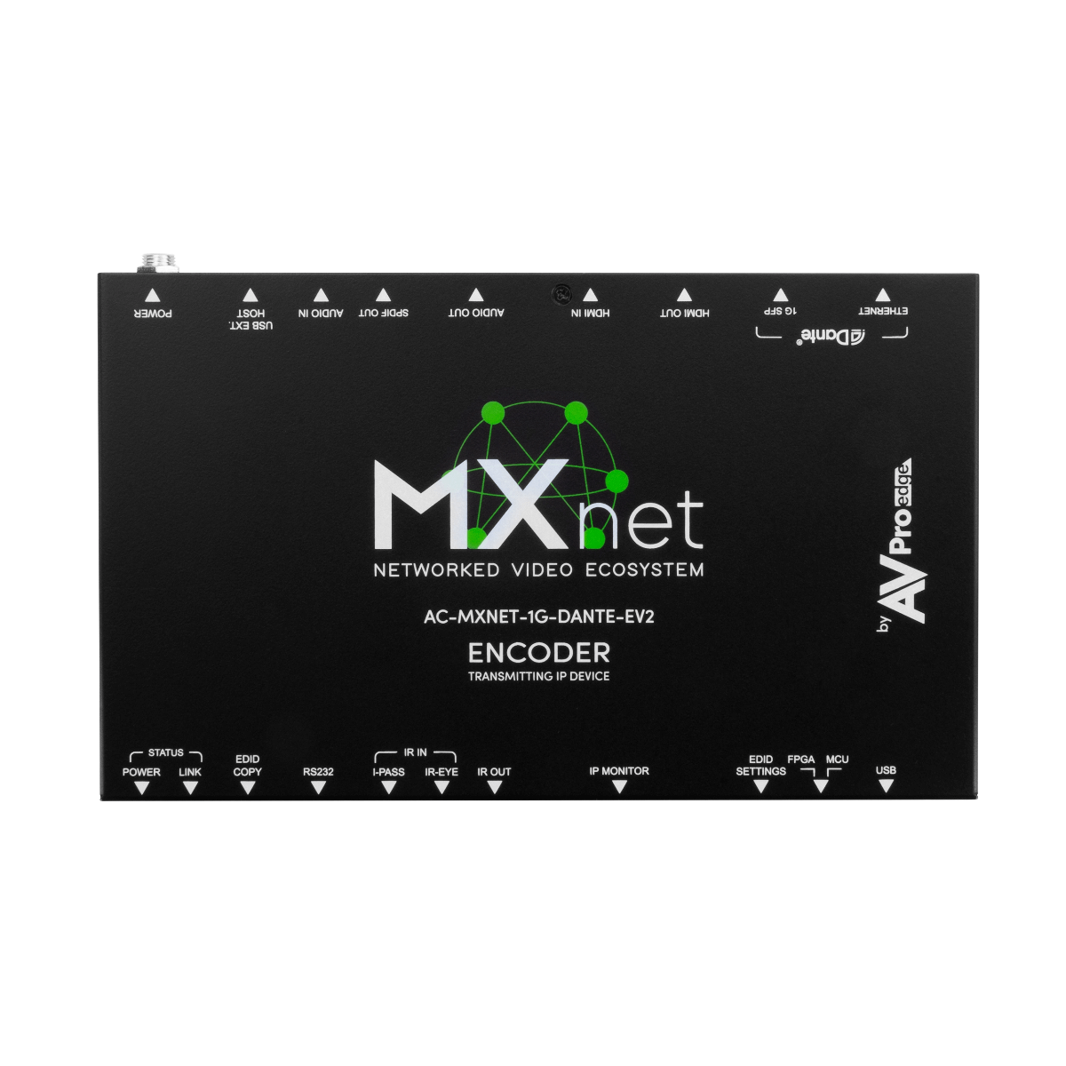 AC-MXNET-1G-DANTE-EV2 adds Dante audio encoding capability to the enhanced video quality of MXnet Evolution II, providing system designers with flexible endpoint options while simultaneously consolidating wiring paths. Installations that systematically deploy Dante audio but segregate it to an independent network can now simplify long-haul transport cabling into single destination endpoint routes. Encoded Dante streams are ferried from the AC-MXNET-1G-DANTE-EV2 to MXnet EVO II Dante-equipped decoder endpoints, using these as break-out bridges to leapfrog encoded signals closer to Dante-enabled amplifiers and potentially aid in occasionally overcoming Audinates 100-meter Category cable distance threshold for Dante, while also helping to minimize analog speaker runs. Dante-equipped self-powered speakers may also take advantage of merged centralized stream routes. Imaginative creativity will quickly turn into material and labor savings. Identical to the non-Dante in baseline configuration and technical profile, the AC-MXNET-1G-DANTE-EV2 retains the cool-running, energy-efficient, chip-top fan-free design characteristics of AVPro Edges MXNET-1G-EV2 by incorporating Dante I/O software into the operating system chipset, which eliminates the thermal increase from the active device daughter board in previous implementations of Dante across the MXnet ecosystem. The AC-MXNET-1G-DANTE-EV2 and its companion decoder, the AC-MXNET-1G-DANTE-DV2, each securely fit into the same accessory rack holder as standard MXnet EVO II encoders and decoders.
