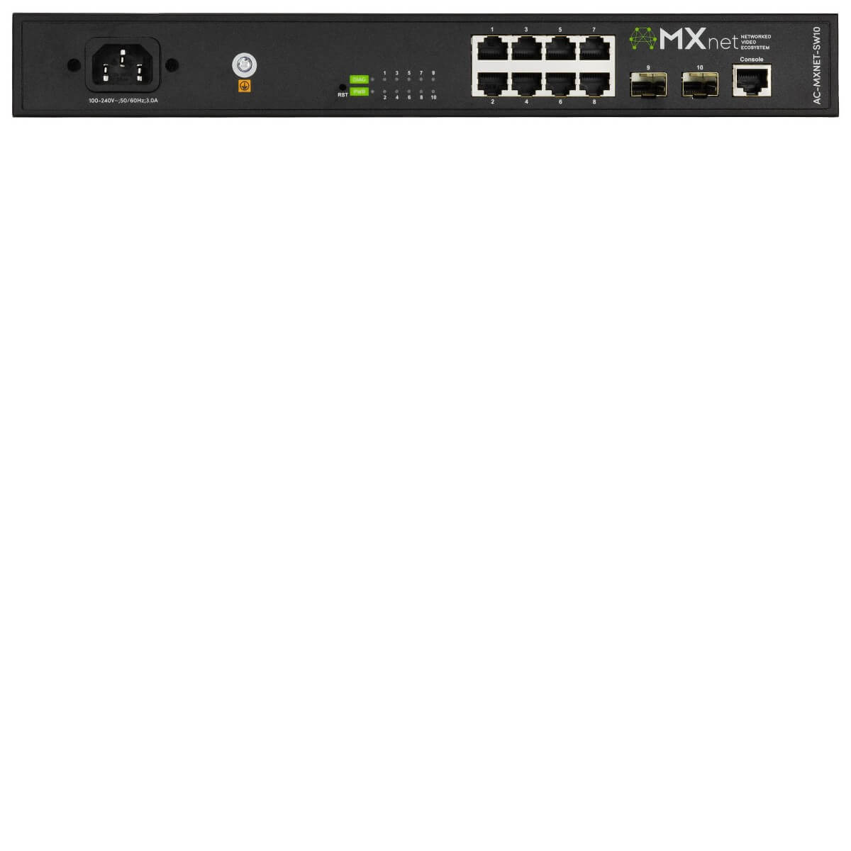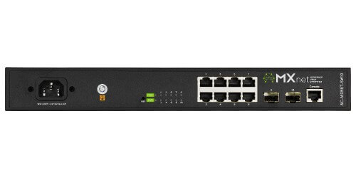 The MXNet 10 Port Network Switch is the center from which all other MXNet Ecosystem platform components revolve. The AC-MXNET-SW10 (and AC-MXNET-SW24, AC-MXNET-SW48) packs a serious A/V performance punch with AVPro Edge’s proprietary design and engineering efforts. The AC-MXNET-SW10 includes a new AVPro developed network switch operating system (NOS) designed to reduce multicast processor loads and adds unique AVPro developed Intelligent A/V Processing (IAVP) technologies for more efficient multicast routing.The AC-MXNET-SW10 Network Switch is only one part of the MXNet Ecosystem that includes Encoders, Network Switches, Control Processors, and other various components designed to facilitate building a custom A/V distribution system. MXNets Ecosystem includes formatting such as resolution scaling, complete EDID management, multifaceted video walls, and contains the MXNet MENTOR setup and control tool. MENTOR makes installations easy on the integrator while also presenting a major WOW factor for your client. Key benefits of using AC-MXNET-SW10:Fast Switching – Enjoy almost instant source-to-source switching to any receiving endpoint. On average, MXNet switches between the same timing and resolution sources in less than 2 seconds with zero black frames when the scaling setting is on. Low Latency – The average latency time between audio and video onset is around 35ms. Anything 40ms or less is invisible to human eyes and ears. We tested latency thoroughly and found that different signal types can play a role in latency: MXNet Point to Point (HDMI or Decoder Analog Out)Less than or equal to 33MS or 1 Frame at 30hzMXNet Encoder (Non-Downmixing/2CH PCM Only)Less than or equal to 1MSMXNet Encoder (AVDM)Less than or close to 60MS60MS is achieved only when downmixing high bit rate audio (Dolby TrueHD or DTS Master Audio), usually less. Anything less than 100MS is considered unnoticeable. IAVP (Intelligent A/V Processing) – We re-engineered and optimized every system module that impacts multicast processing. That includes a complete reworking of IGMP, Jumbo Frames, Spanning Tree, and multicast filtering. MXNet NOS (Network Operating System) – Multicast CPU utilization has been entirely reworked, resulting in excellent efficiencies. Processor loads will never exceed 40% even when the switch is fully populated. System boot times take 1 min 45 sec from cold power up to full functionality, including POE device power-up.(Note: This non-stackable version of our MXNet Switches does not have 10G SFP+ ports and can only send or receive one source on one 1G SFP port.)