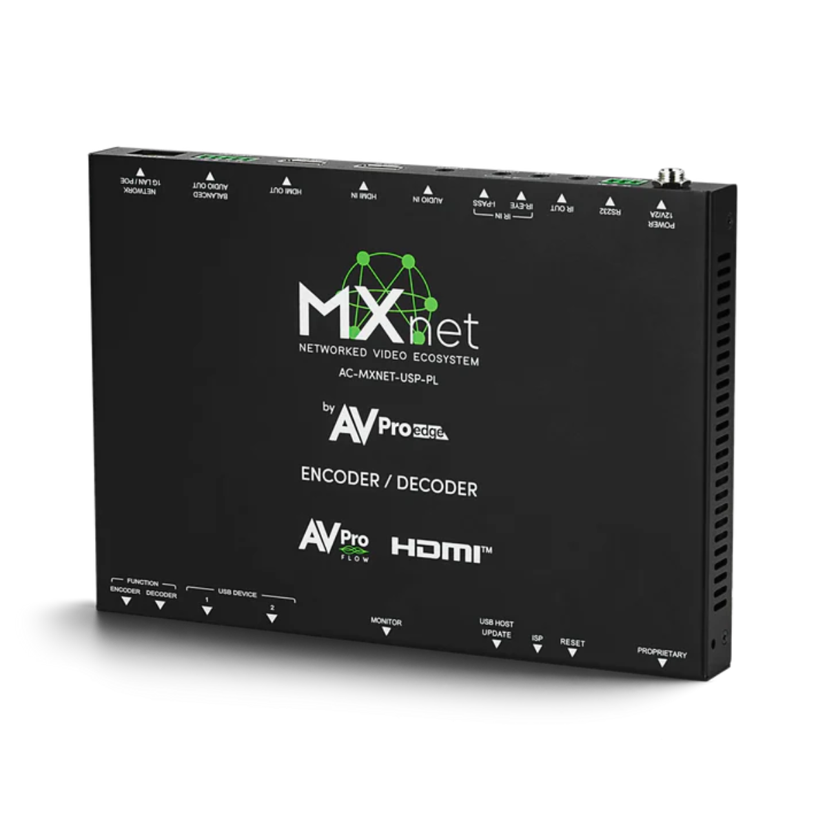 All USP models are built with AVPro Flow technology which provides interoperability between MXnet endpoints and compatible 3rd-party H.265/H.264 AV equipment. Whether integrating existing H.265/H.264 encoders, software-based decoders, or streaming platforms, AVPro Flow ensures reliable, low-latency video transport across mixed environments.