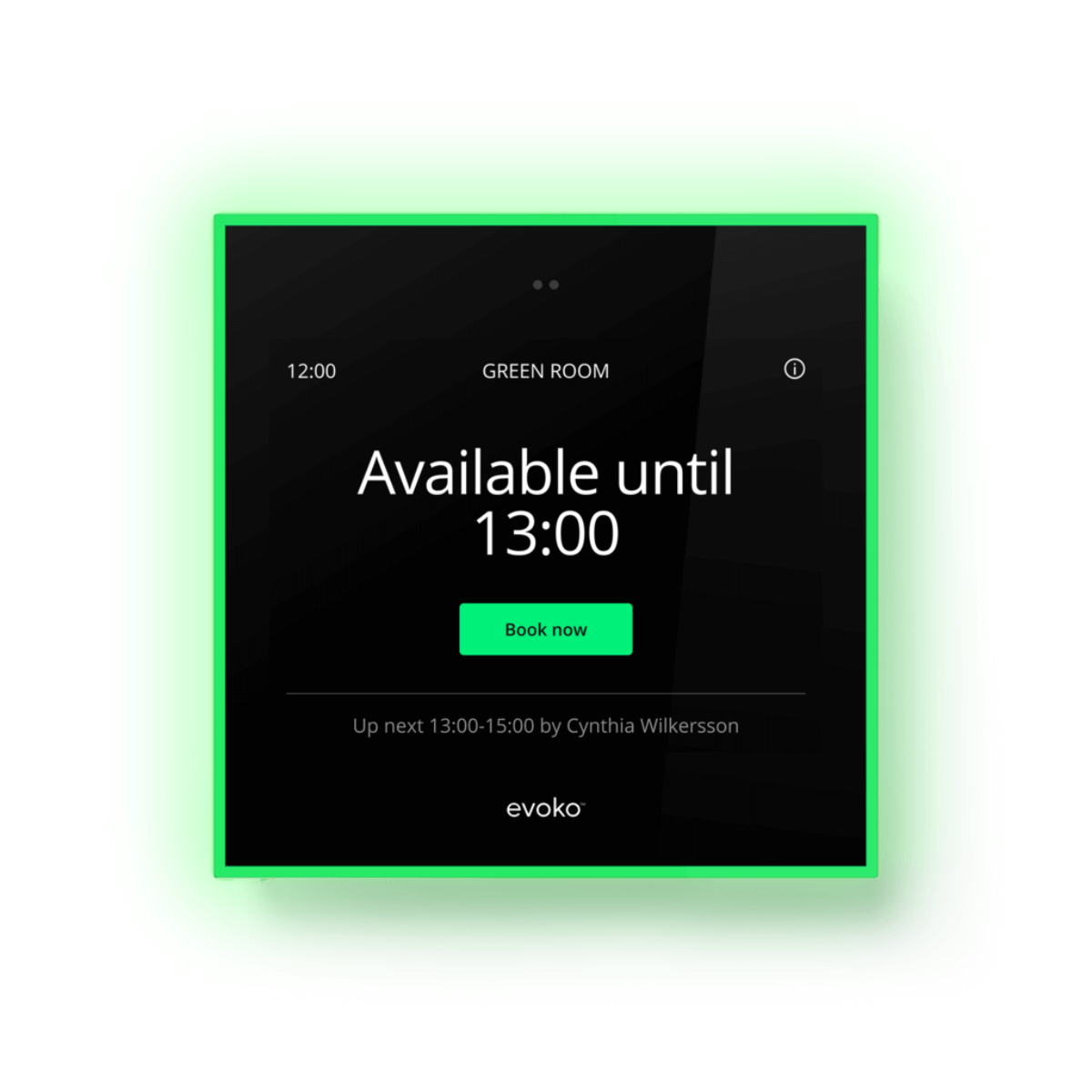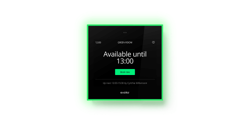 Our latest generation scheduling display, perfect for a cloud-based setup without any need for server installations. Placed outside any meeting room, the Naso clearly shows the availability of the room. Connected to Evoko Workplace. Easy to combine with Desk Scheduling.