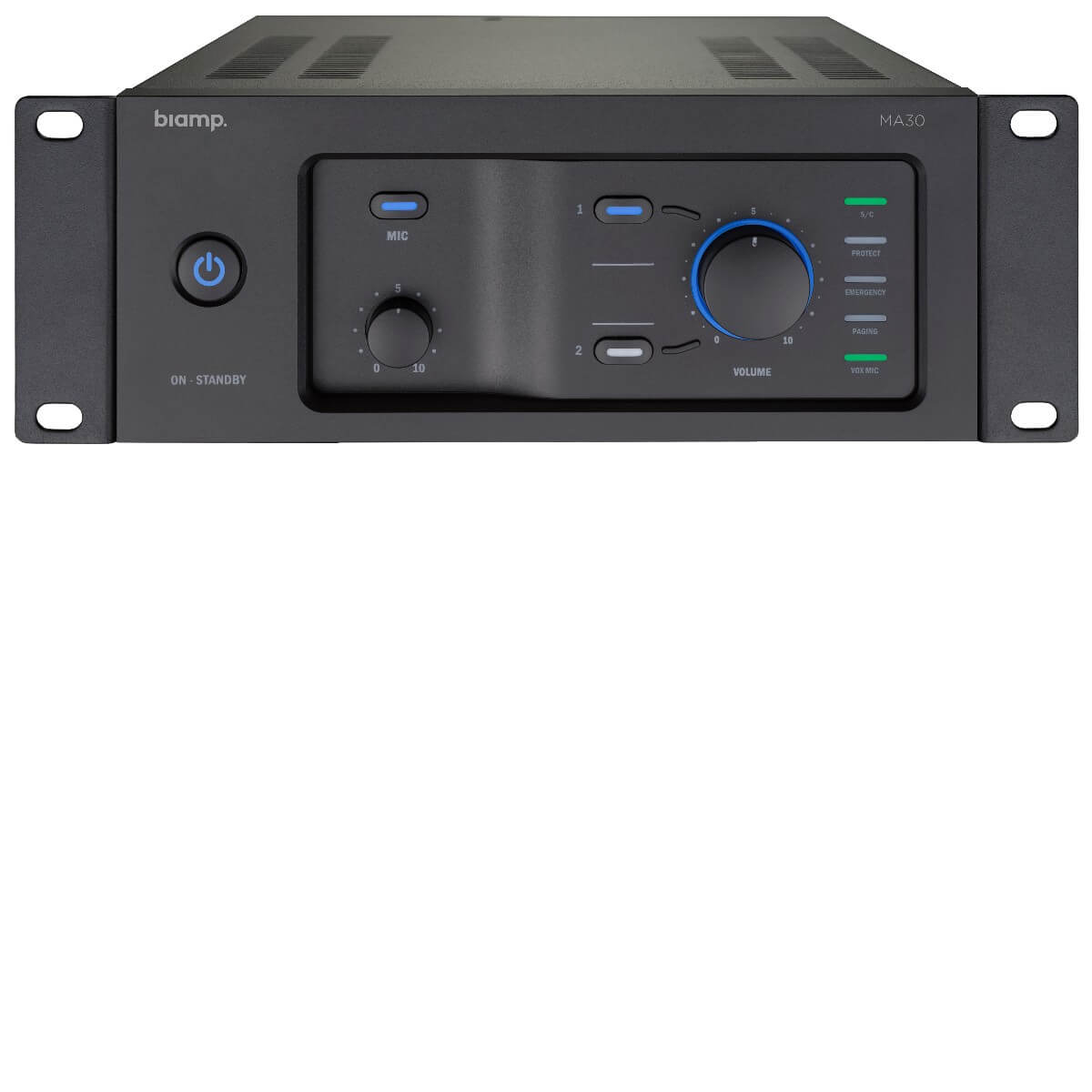 The MA30 comes in a compact 9.5? housing with 1 mic/line input and 2 stereo line, mono summed inputs.