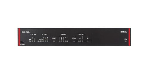 The PM4100 is a multi-functional stereo preamplifier controlled via the network or RS-232 connection. The PM4100 is equipped with four stereo inputs, 4 GPIO, and one stereo output. It integrates easily with a variety of control systems and the USB input enables direct audio connection and volume control from a computer. The PM4100 can be powered by either PoE or 12V DC. It's audio performance, ease-of-use, and versatile feature set makes the PM4100 ideal for a variety of professional audio applications.