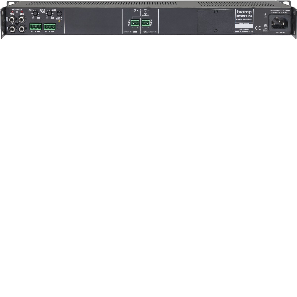 The new all-purpose REVAMP2150 is a professional 2-channel digital power amplifier with 2 x 165 watts dynamic output power @ 4 ohms, that can easily be bridged into a powerful 330 watts @ 8 ohms single amplifier. This class-D amplifier is convection cooled without built-in fans which implies that the amplifier is completely noiseless and dust-free. The unit has multiple speaker and amp protection circuits built inside for DC protect, over current protect, over temperature protect and protection against input overload. During the configuration of the input gain, the rear clip LED indicator is very useful and handy for a fast and easy installation. Versatile connectivity due to balanced and unbalanced inputs on euroblock or cinch, pass-through outputs on cinch and loudspeaker outputs on euroblock. Housed in a straightforward 1U slim and lightweight design without front control the REVAMP2150 is an amplifier unlike any other in the small and mid-sized fixed install audio market.