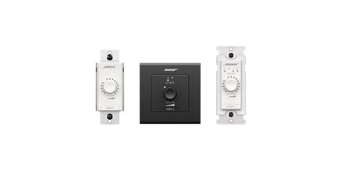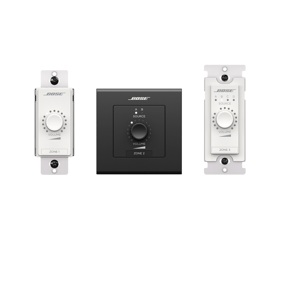 Bose Professional ControlCenter digital zone controllers provide volume and source selection for Bose CSP, ESP, and EX sound processors. Powered using PoE, up to 16 units for CSP and 32 units for CSN can be used simultaneously on an Ethernet-based network. Three models are available in either black or white, feature volume/source LED indicators, and fit 1-gang electrical boxes in North America, Europe, and Japan.