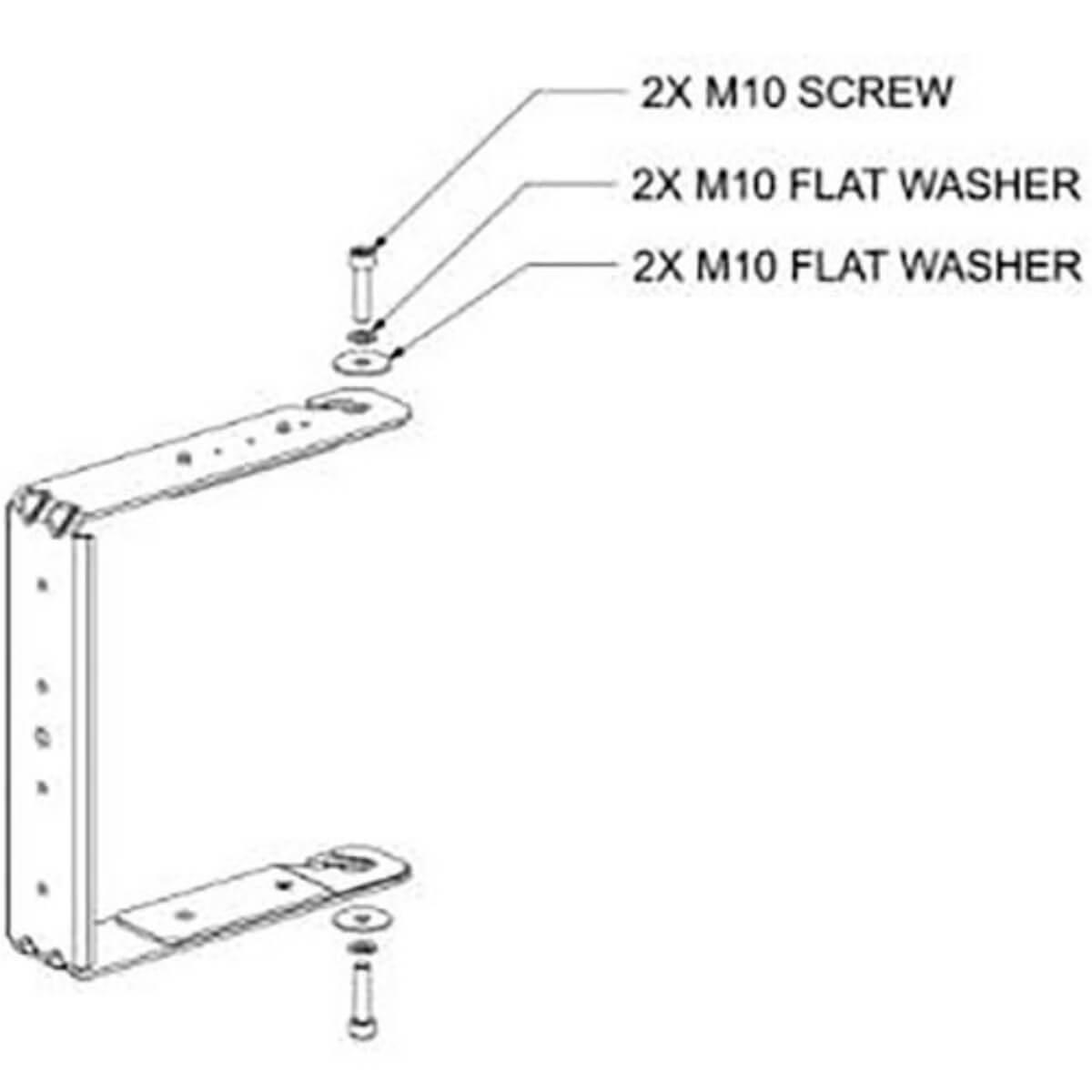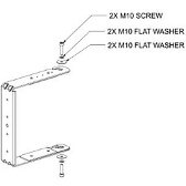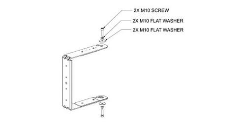 The AMM108 U-bracket allows for versatile mounting of a single AMM108 loudspeaker with ample rotation to accommodate various pitch angles. The structural rigidity of the bracket allows either two-point attachment to flat surfaces such as walls or ceilings, or single-point attachment via the center mounting hole to secondary support structures such as third-party lighting-pole mounting kits or truss. The bracket fits the M10 x 20 mm threaded inserts on the side of the AMM108 loudspeaker, is shipped with required fasteners for attaching the U-Bracket to the loudspeaker and is not intended for permanent outdoor installation.