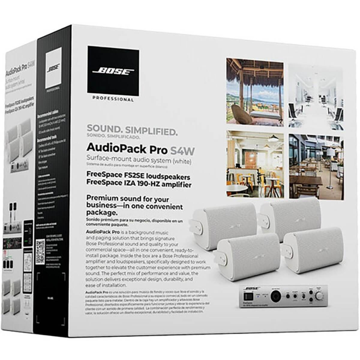 The AudioPack Pro S4 combines four FreeSpace FS2SE surface-mount loudspeakers with the FreeSpace IZA 190-HZ integrated zone amplifier, which are specifically matched to elevate your customer experience with premium audio. Each of the FreeSpace FS2SE delivers remarkably consistent tonality, clear voice reproduction, and a smooth musical response, while their pleasing aesthetic blends into any environment.