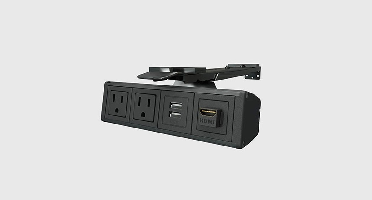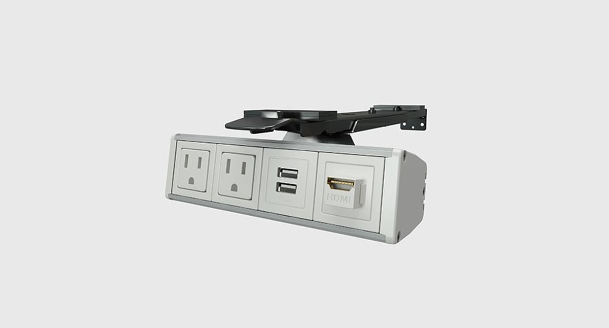 The Byrne Electrical Assemble Reveal is an under table mount AV box. It can be installed flush under to the edge of the table or 13" back to hide and slide forward, this allows it to be fully concealed under the table. When you need your connections slide it forward on the ball bearing track, this is ideal if you want it to be hidden all the time. Under table mounts are perfect for those that don't want to cut holes in their table top or just need temporary installations, this is ideal for rental applications as well.