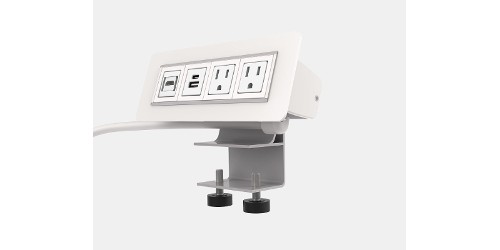 The Axil X from Byrne is a stylish table edge AV mount that clamps to the edge of a table. It consists of 2 power with 10' cord, dual charging USB (1 of each type A/C), and 1 HDMI connection. The HDMI connection on the backside is 18" long and female. The charging USB ports are integrated into the power in the unit, this makes it to where an additional power cord is not required. The Axil X can be clamped to any surface with a thickness of 3/4" to 1 3/4". The unit ships standard in gloss white but can be upgraded to gloss black for an additional charge. Table clamping mounts are perfect when you don't want to cut a hole in your table or you are looking for a table AV box that can be moved from location to location with ease.