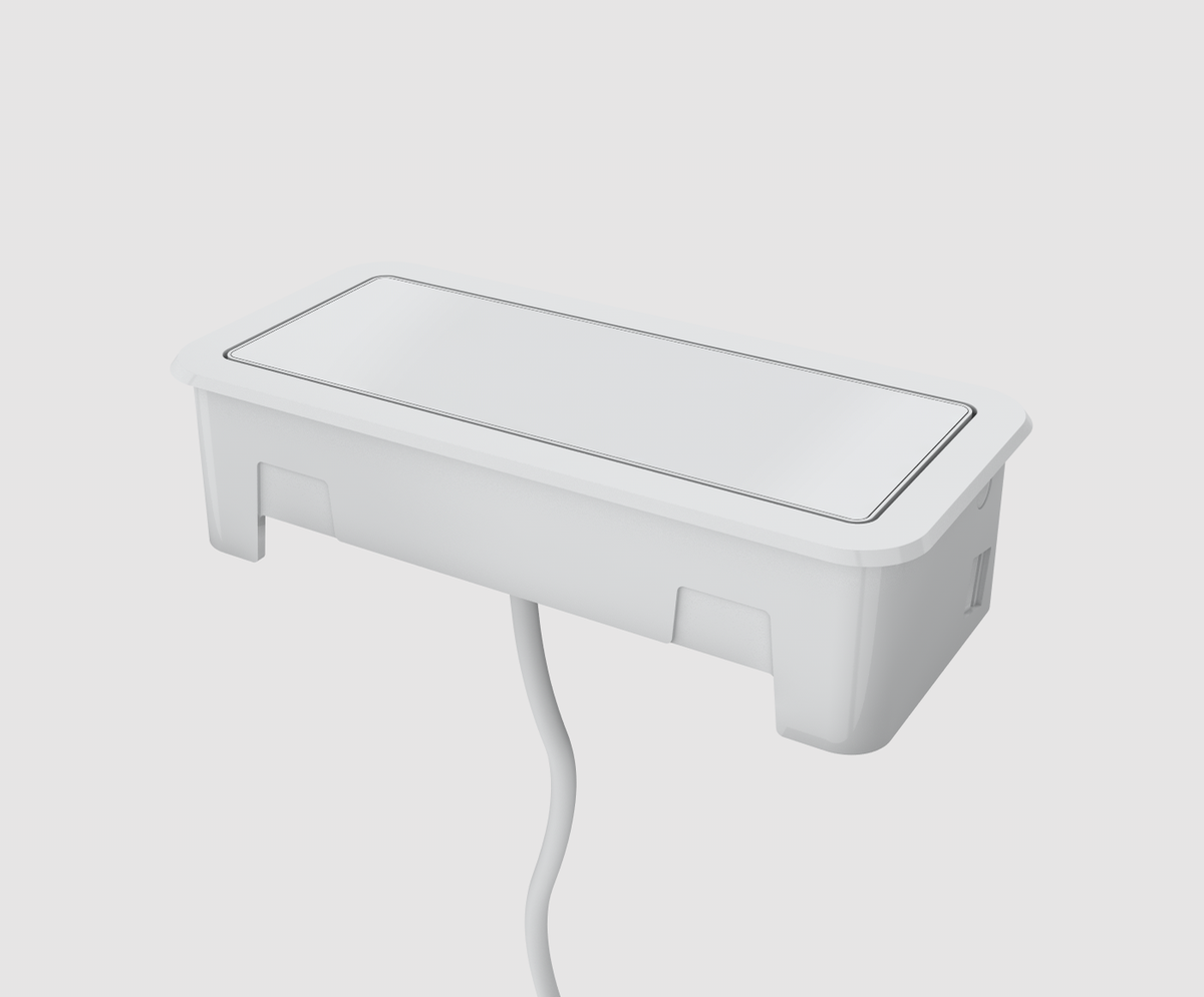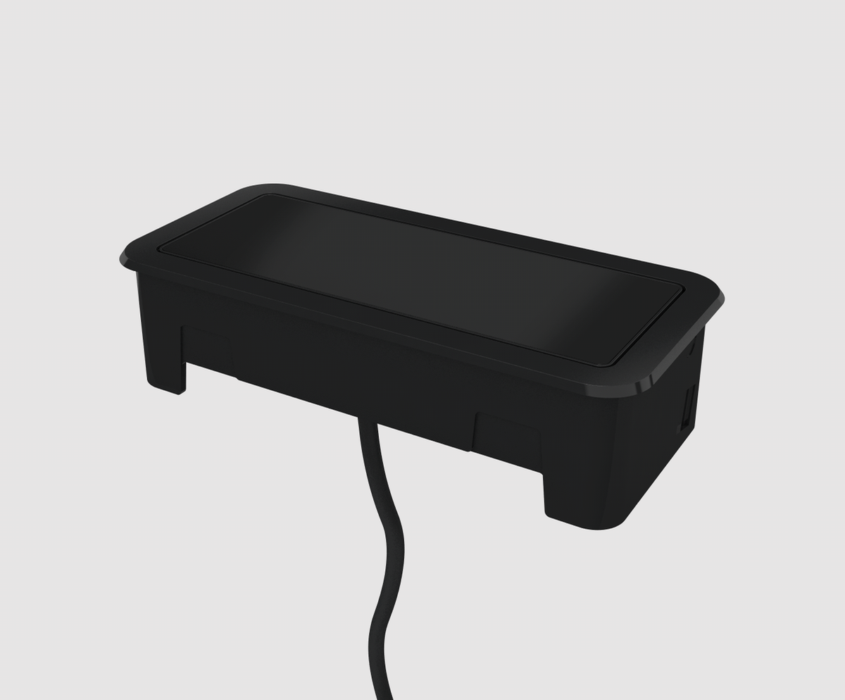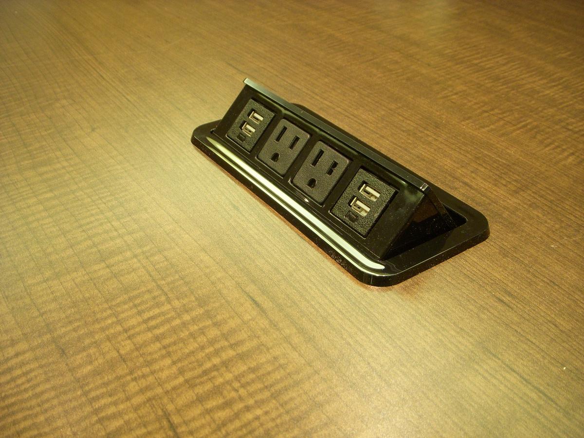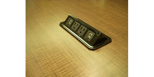 The Byrne Nacre is an attractive tilt up style table box that hides two power outlets and four USB charging ports (2 of each type A/C) flush in your table. Choose from modern colors to accent the decor in your room. When you need to start charging simply press the top and the unit will tilt open, when you are done press it back down till it latches closed and flush with the table again.