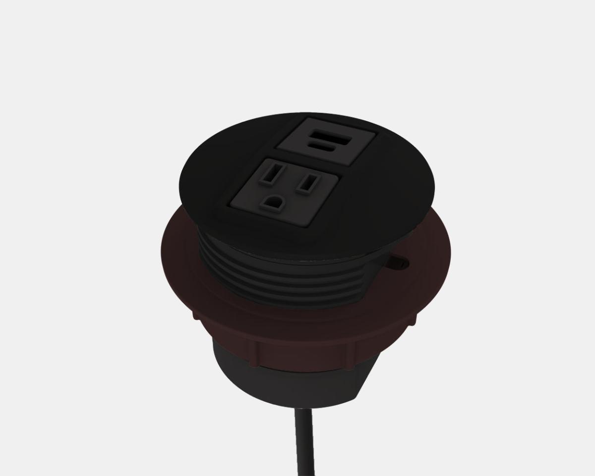 The Byrne Node-USB is a surface mount table box that provides a single power outlet and dual charging USB (1 of each type A/C). Installation is easy, use a 3" hole saw to cut your hole. Drop in the Node-USB and secure to the underside of the table with the nut. The charging USB is integrated into the power so no extra power cord is required, all you have to do is plug in a single 10' power cord. Bring charging to any table surface at an affordable price with the easy to install and elegant looking Byrne Node-USB.