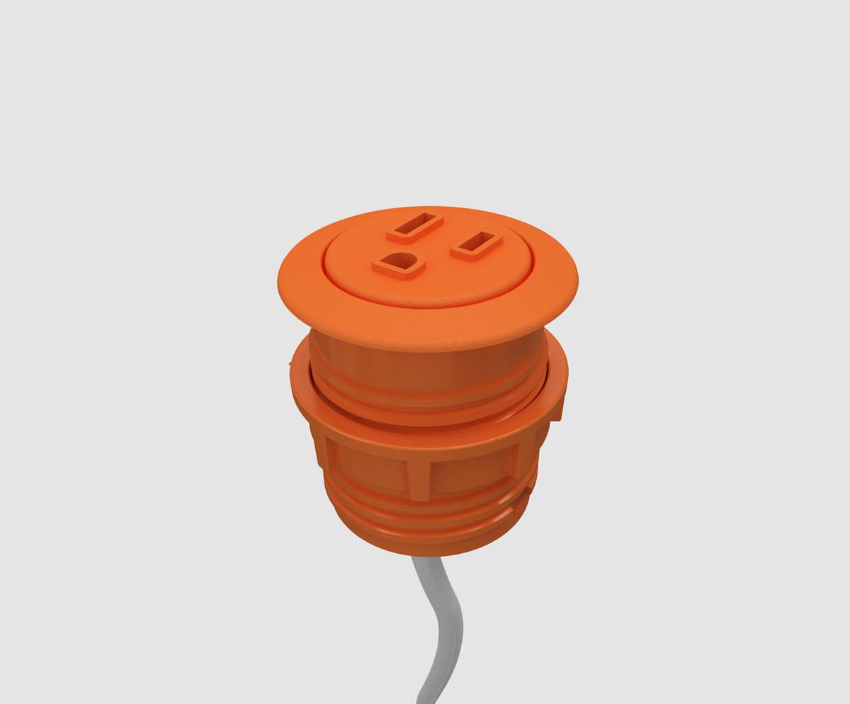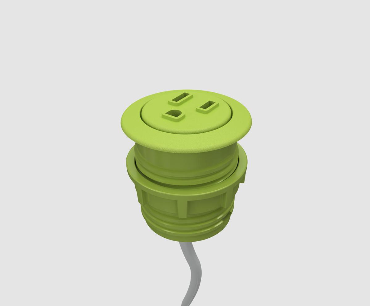 The Byrne Pepper is is a round single power grommet, the outlet is spill-proof so you never have to worry about liquids. The bezel is only 2" and the cutout needed is only 1 3/4", just use a hole saw for quick installation.