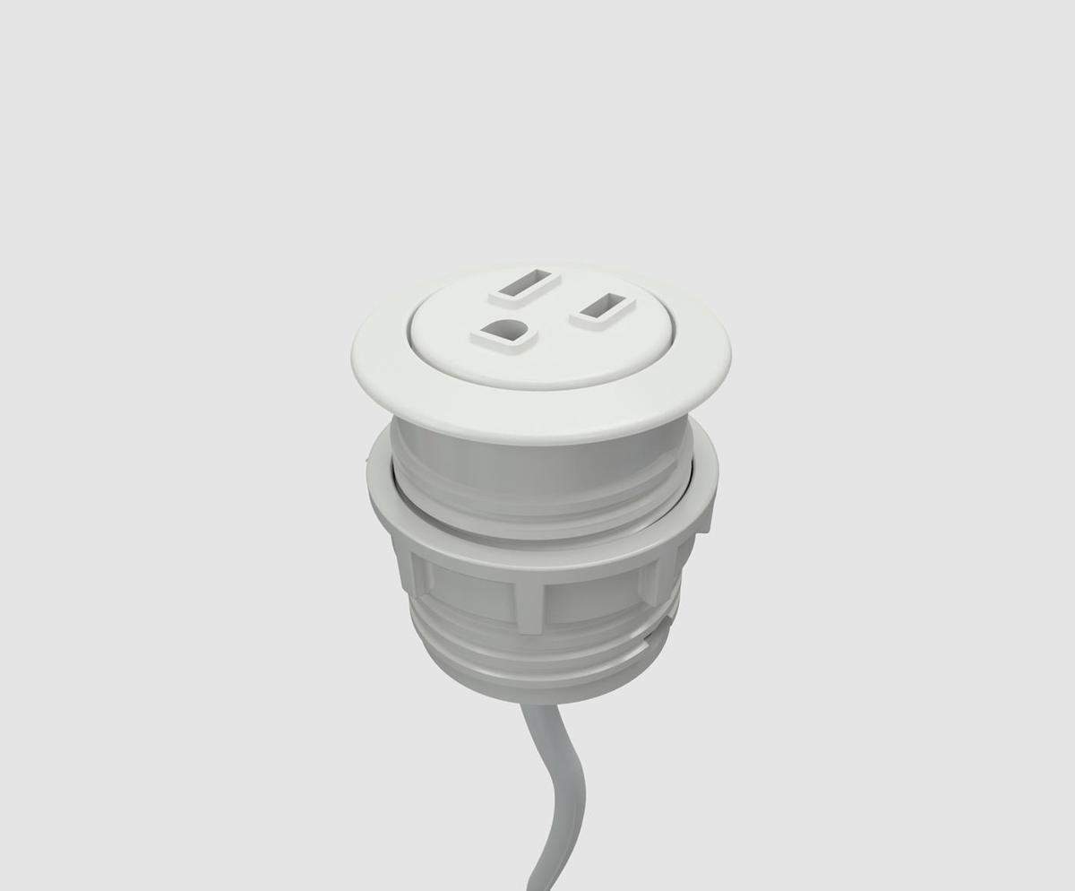 After the hole is cut to finish the installation just drop it in the hole and secure to the underside of the table with the included nut, it just threads on till it is tight with the table. There is a single 10' power cord that needs to be plugged in and you are done, you will be enjoying stylish power in a small foot print in no time.