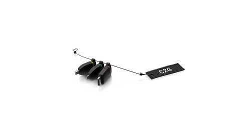 The universal cable mount attaches directly to the in-room HDMI display cable, ensuring that the adapters are always within reach. The adapter ring slides to the HDMI connector when needed and out of the way when not in use, reducing strain on the HDMI cable and clutter on the tabletop. The optional stopper fits on HDMI cables from 5mm to 10mm in diameter and prevents the adapters from sliding too far down the cable.