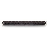 This 24-Port Cat6 110-Type Patch Panel is made for optimum performance with black electrostatic powder-coated steel and 50 micron gold-plated contacts. Every panel comes in traditional 6-port module format with 110-type terminations, and meets and exceeds EIA/TIA TSB-40 Cat6 connecting hardware specifications.
