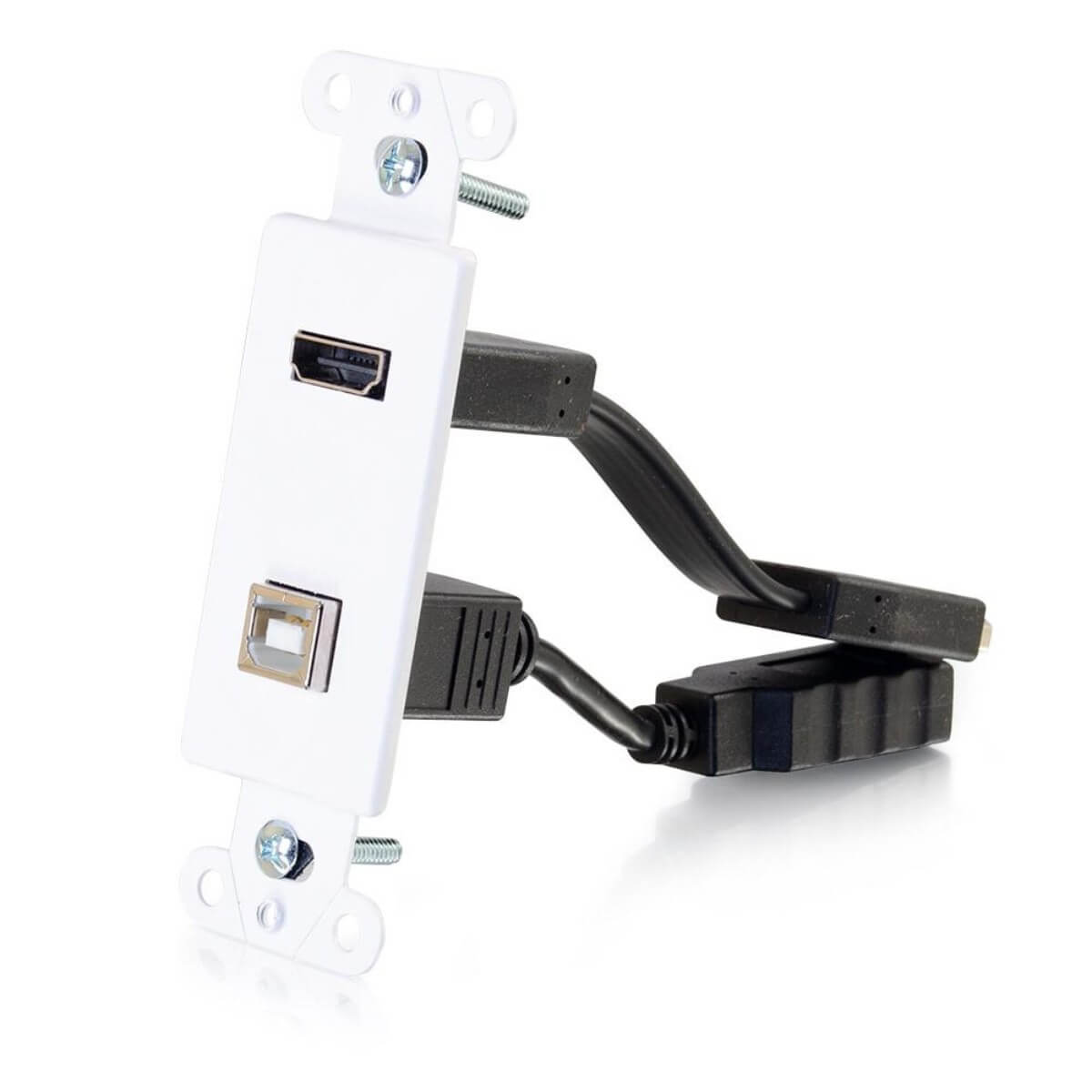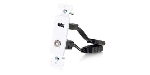 The HDMI and USB Pass-Through Decora Style Wall Plate is perfect for the transition to in-wall cabling. The HDMI pass-through port includes a thin, flexible HDMI pigtail that accommodates the tight bend radius required for installations within a standard junction box. The USB pass-through provides support for passive extensions of up to five meters of total cable length, but may be used with an active USB extension solution for longer distance connections. Constructed of aircraft grade aluminum, this wall plate is designed for durability and a long life.