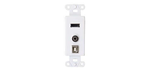The HDMI, USB and 3.5mm Audio Pass Through Decorative Wall Plate is perfect for the transition to in-wall cabling. This solution offers a clean, professional look and is ideal for classrooms, conference rooms and houses of worship.