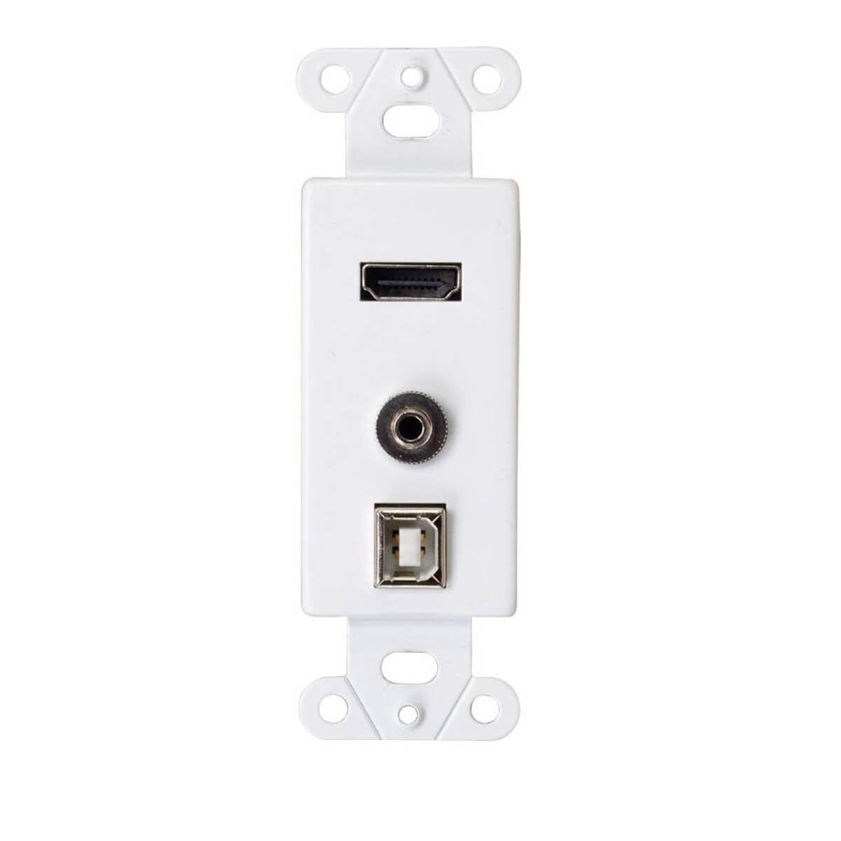 HDMI, USB and 3.5mm Audio Pass Through Decorative Wall Plate - White