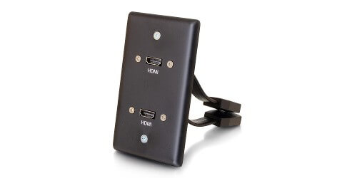 The Dual HDMI Pass Through Single Gang Wall Plate is perfect for the transition to in-wall cabling. This solution offers a clean, professional look and is ideal for classrooms, conference rooms and houses of worship.