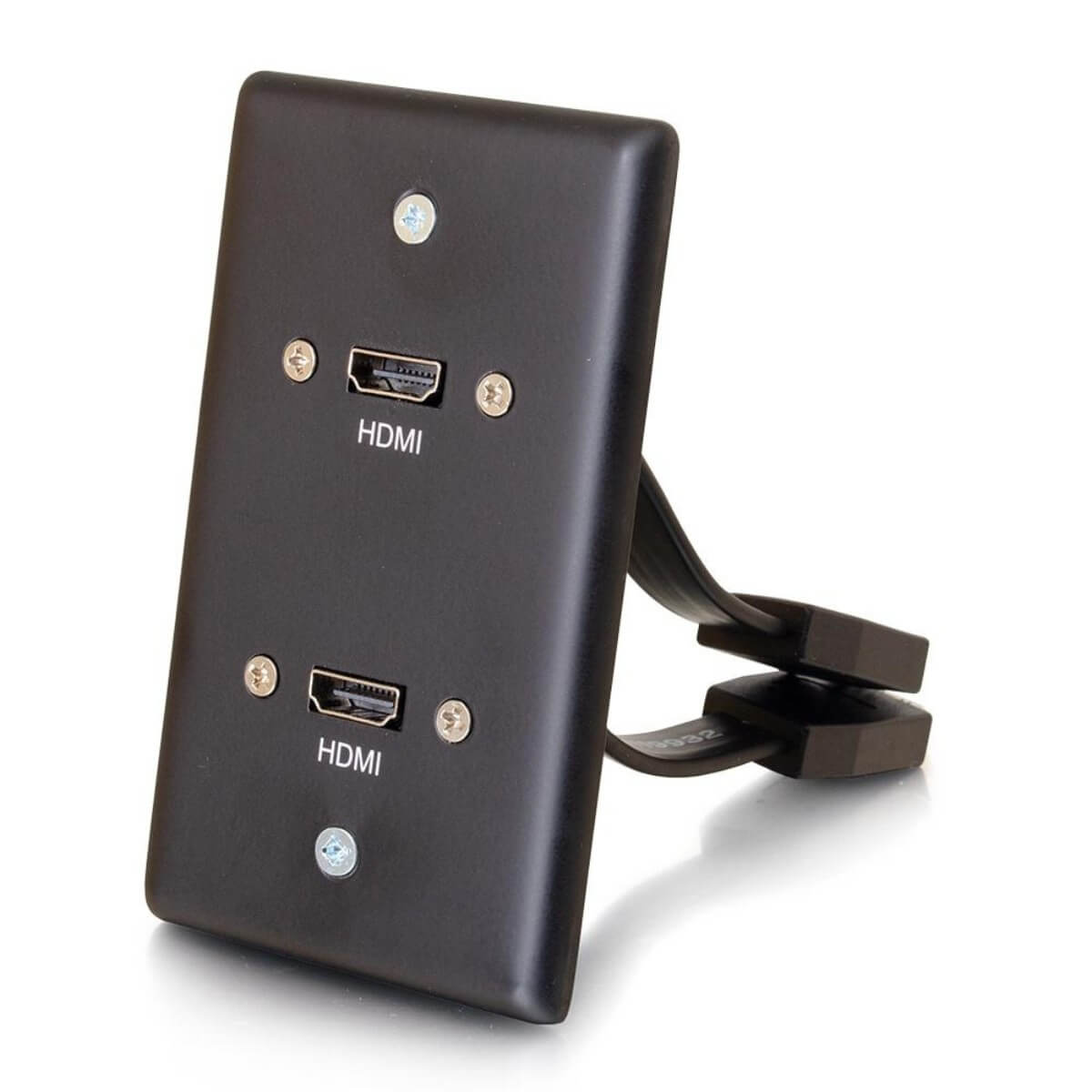 Dual HDMI Pass Through Single Gang Wall Plate - Black