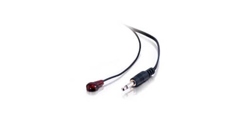 Ideal for use with #40430, Remote Control Repeater Kit. Plug this IR emitter into a 2-conductor 3.5mm keystone jack and stick it over the IR eye on your audio/video equipment. The emitter operates on 12 VDC and is compatible with most IR devices. Put your components where they belong, not where you see them! You can even control audio/video devices located behind doors or in other rooms.