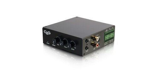 The C2G CG40881 features multiple input options, including 3.5mm, RCA, and mic inputs for the compatible 25V or 70V high-impedance commercial speakers. It helps speakers produce a clean sound that does not need much tweaking once in place.