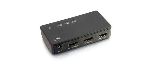 The 2-Port HDMI Splitter 4K 30Hz is a 1-Input 2-Output splitter supporting up to 4K (4096 x 2160 at 30hz, 4:4:4) video, ideal for applications utilizing the HDMI 1.4 standard. A perfect solution for connecting a computer, Blu-ray™ player, gaming console, media server, or A/V receiver to two HDMI displays.