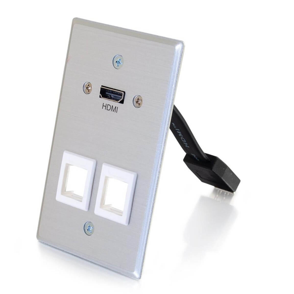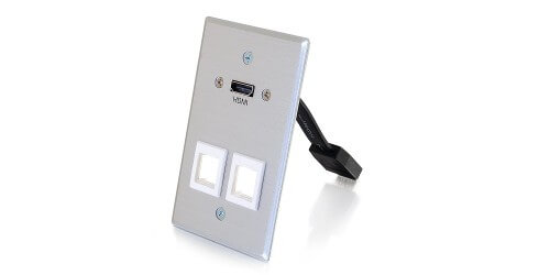 HDMI Pass Through Single Gang Wall Plate with Two Keystones - Aluminum