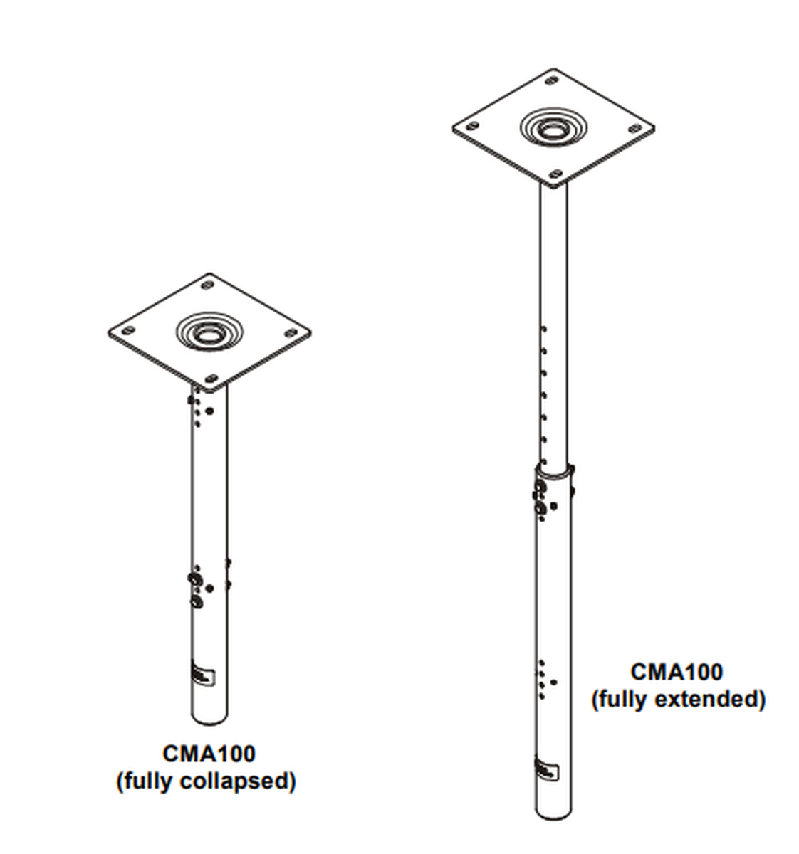 The Chief CMA100W is a universal ceiling plate solution for most structural ceiling installations. The CMA100 allows users to quickly adjust the drop distance 24.25-46 inches. The CMA100 ceiling plate comes with four set screws and connects to a 2" NPT column.