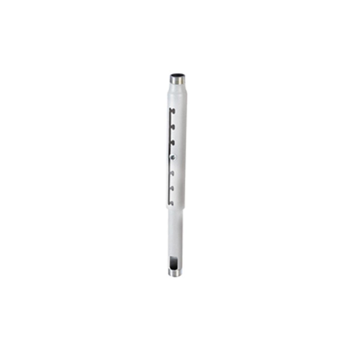 Chief's CMS018024W is an Adjustable Speed-Connect Extension Column that is adjustable between 18 - 24" lengths. This extension column from Chief can be used with any 1.5" NPT ceiling mount or accessory to lower or adjust a ceiling mounted flat panel display or projector to your desired height. Chief designed the CMS Adjustable Extension Series Columns from a very high-quality aluminum construction and with a revolutionary notched design for length changes (1" increments) which allows for extremely fast adjustments without disassembly of the system. Also featured is a flow-through cable management that allows cables to pass through the column with an integrated port on one end for routing cables, which adds security and a more aesthetic look to your professional display system.