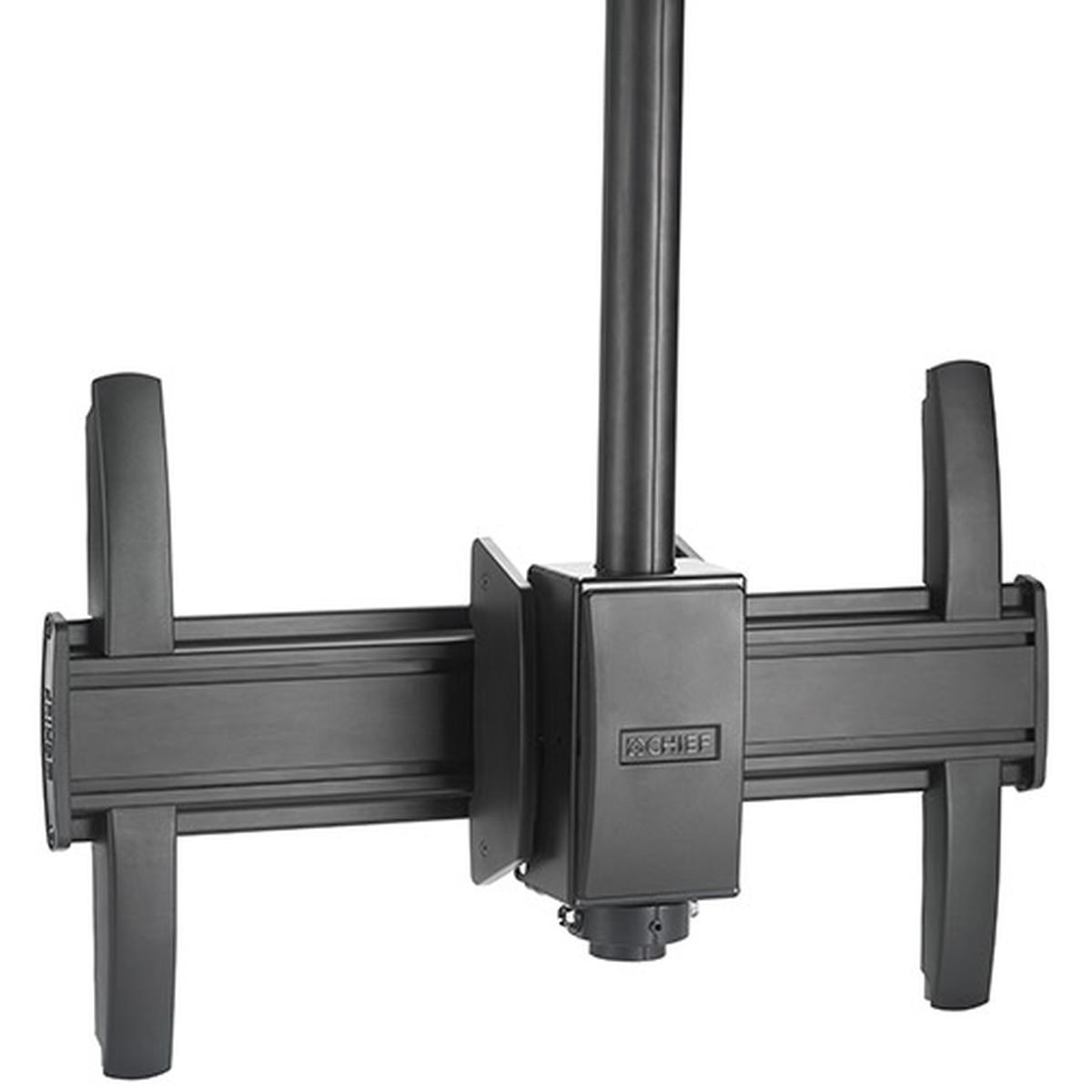 Chiefs LCM1U Fusion large flat panel ceiling mount with micro adjuster. This mount was designed with the professional installer in in mind and offer perfect TV positioning and flexible adjustments for large flat panel screens. This type of mount is perfect for digital signage type applications in bars, retail stores, restaurants, and transportation hubs.