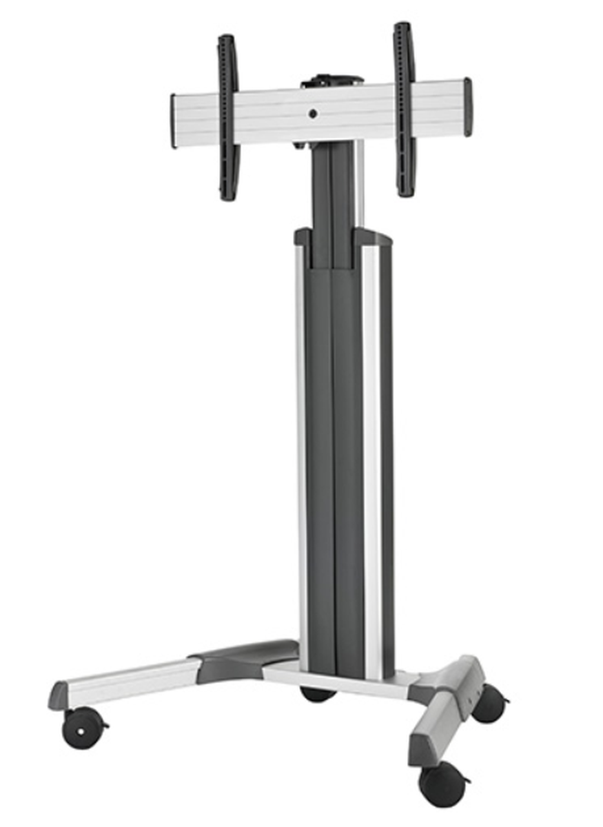 Large Fusion Manual Height-Adjustable Mobile AV Cart, Silver