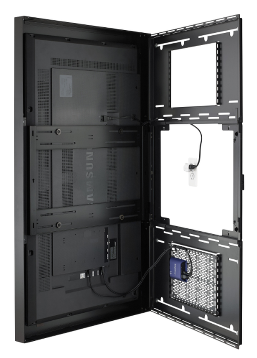 Chief's Impact line of on-wall kiosks are ideal for your digital signage needs. The LW49UBP is a sleek, 49-inch portrait-oriented display designed to encase your signage. The Impact kiosks feature reversible hinges for flexibility in your installation. When opened, the kiosks continue to display the mounted screen, enabling you to perform maintenance as needed.