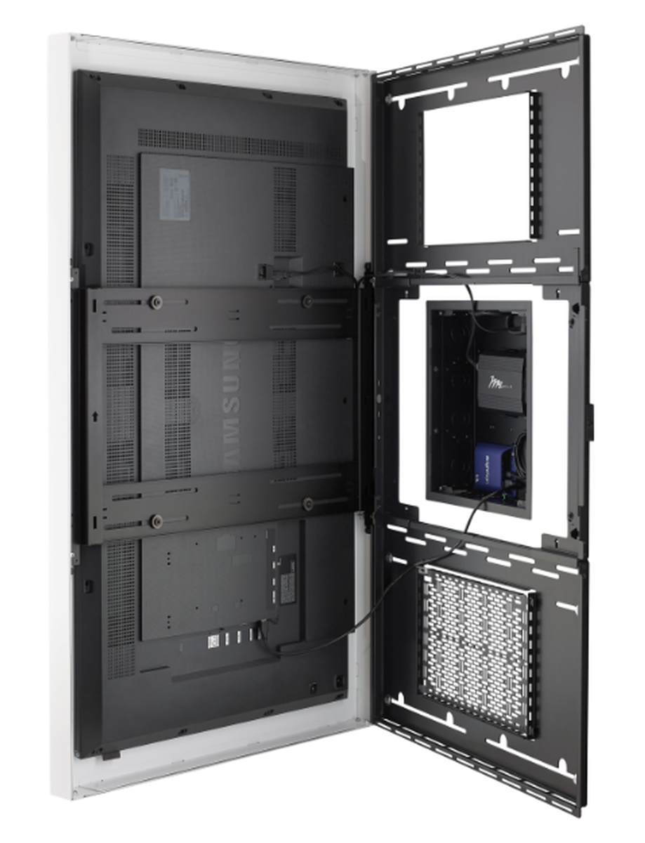 - Depth-adjustable exterior frame supports a wide range of displays