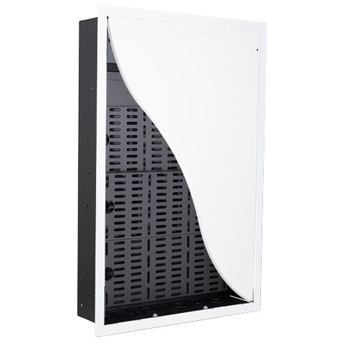The Chief PAC527FCW is a flush mount, in-wall storage box with flange assembly and cover. These extra-large storage boxes provide users an easy-to-organize space to accommodate AV equipment. The PAC527FCW includes a universal backplane that can be mounted on three different levels to layer components within the space. These units can come with or without integrated power, filtering, and surge protection.