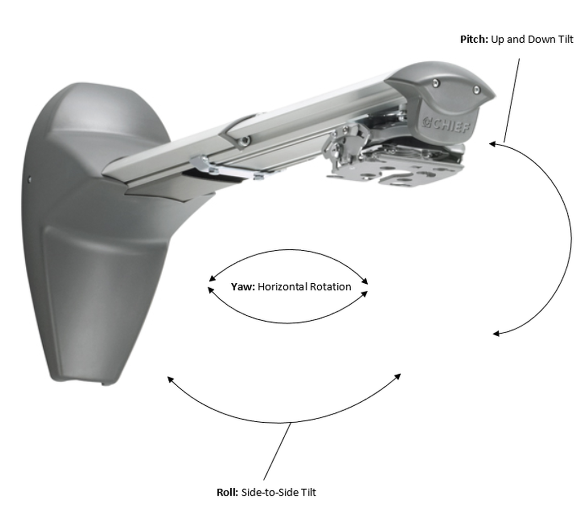 The WM120AUS also includes an integrated cable management system that allows you to conceal unsightly cables for a sleek look. Trust the security of this mount, as it boasts all-points locking hardware as well as four projector mount keyed locks. Chief uses RPA Elite mounts, which account for the roll, pitch, and yaw for stability. Roll describes the rotation around the front-to-back axis of the mount, pitch is the side-to-side axis, and yaw is the rotation around the vertical axis of the mount. These factors ensure precise image alignment. Other key features include:
