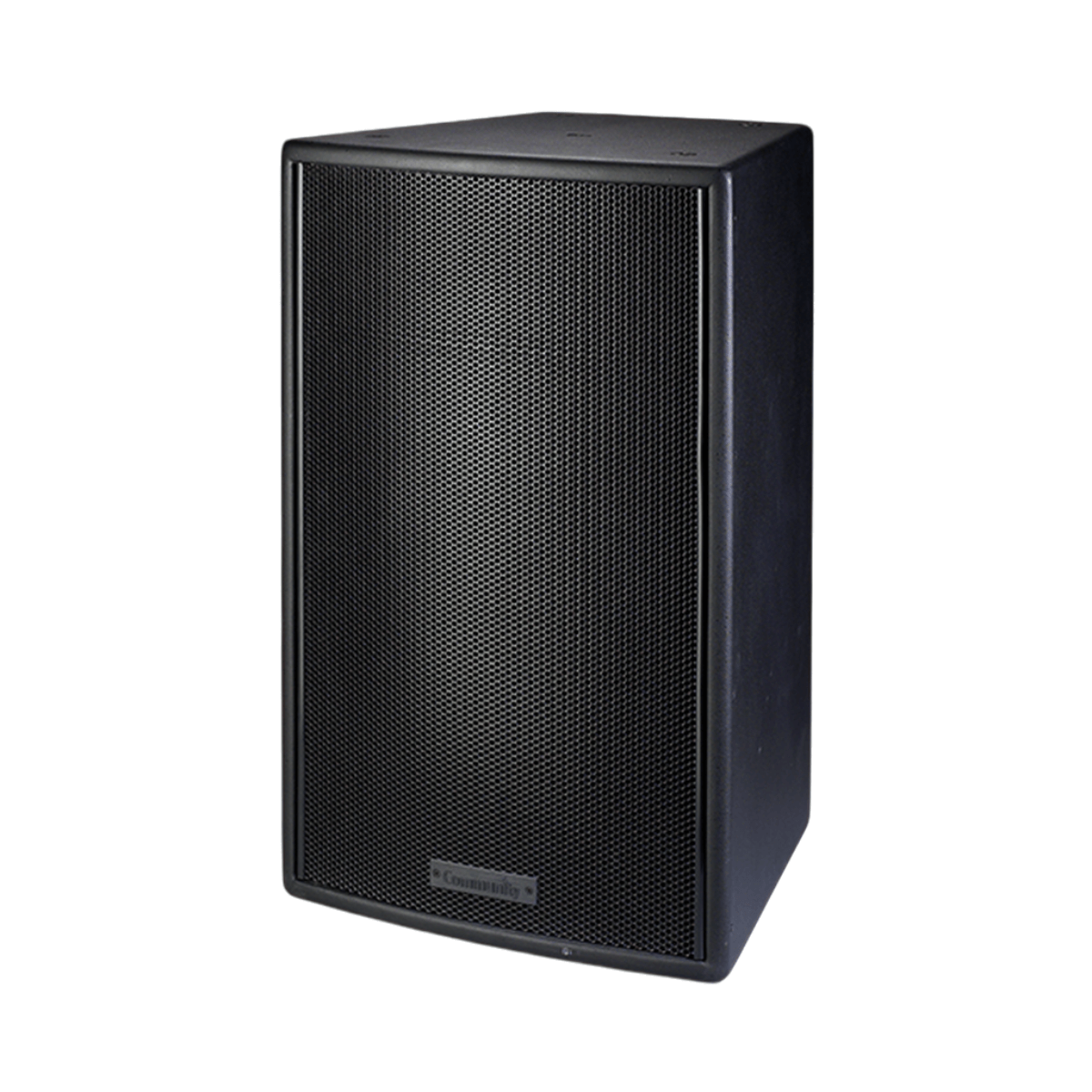 The V2-1296 is a 12-inch, two-way, full range loudspeaker system suitable for use in a wide spectrum of fixed installations. Compact and extremely powerful, the V2-1296 handles applications ranging from jazz clubs and audiovisual presentations, to rock and roll performances. Its trapezoidal design allows it to be clustered with like units, forming powerful arrays. The 90 degree x 60 degree pattern makes the V2-1296 ideal for applications requiring a wide coverage angle, such as in rooms that are wider than they are deep. The enclosure may be suspended from its M10 threaded rigging points using a variety of optional hardware from Biamp, or it may be installed using a third-party mounting device.