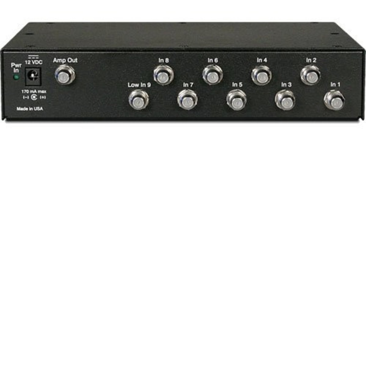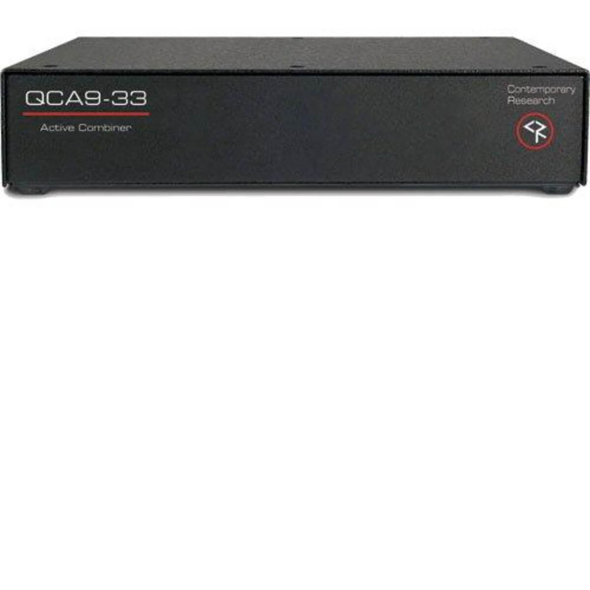 The Contemporary Research QCA9-33, is an active RF combiner that features eight-level inputs and one low-level input, combining with isolation and amplifying up to a 33 dBmV output level.