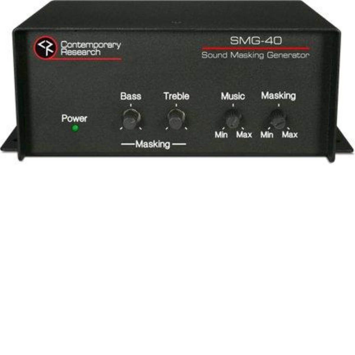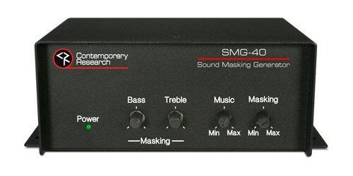 The Contemporary Research SMG-40 Sound Masking Generator has the power to drive over 30 25V plenum and ceiling speakers, 70V transformer, 4/8 ohm speakers, and over 100 Cambridge Qt® Emitters. Many masking generators use standard pink noise while the SMG-40 filtered noise is optimized for masking speech in real-world applications.