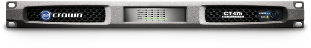 The CT 475 from Crown Audio is a quality designed 4-channel 75W at 4 Ohms Power Amplifier. Powering this amazing device is the pioneering technology of DriveCore, which integrates the amplifier drive stage into the power output stage, fusing everything into a tiny chip that is the size of a dime. With DriveCore's front-end drive circuits bring leverage to the inherent efficiency of Class D type output stages while equally maintaining top notch sonic characteristics. What this results in is a power audio amplifier circuit that exhibits the superb audio quality of a highly evolved Class AB design. Making this power amplifier a great solution for uses in installed sound and recording broadcast type applications.