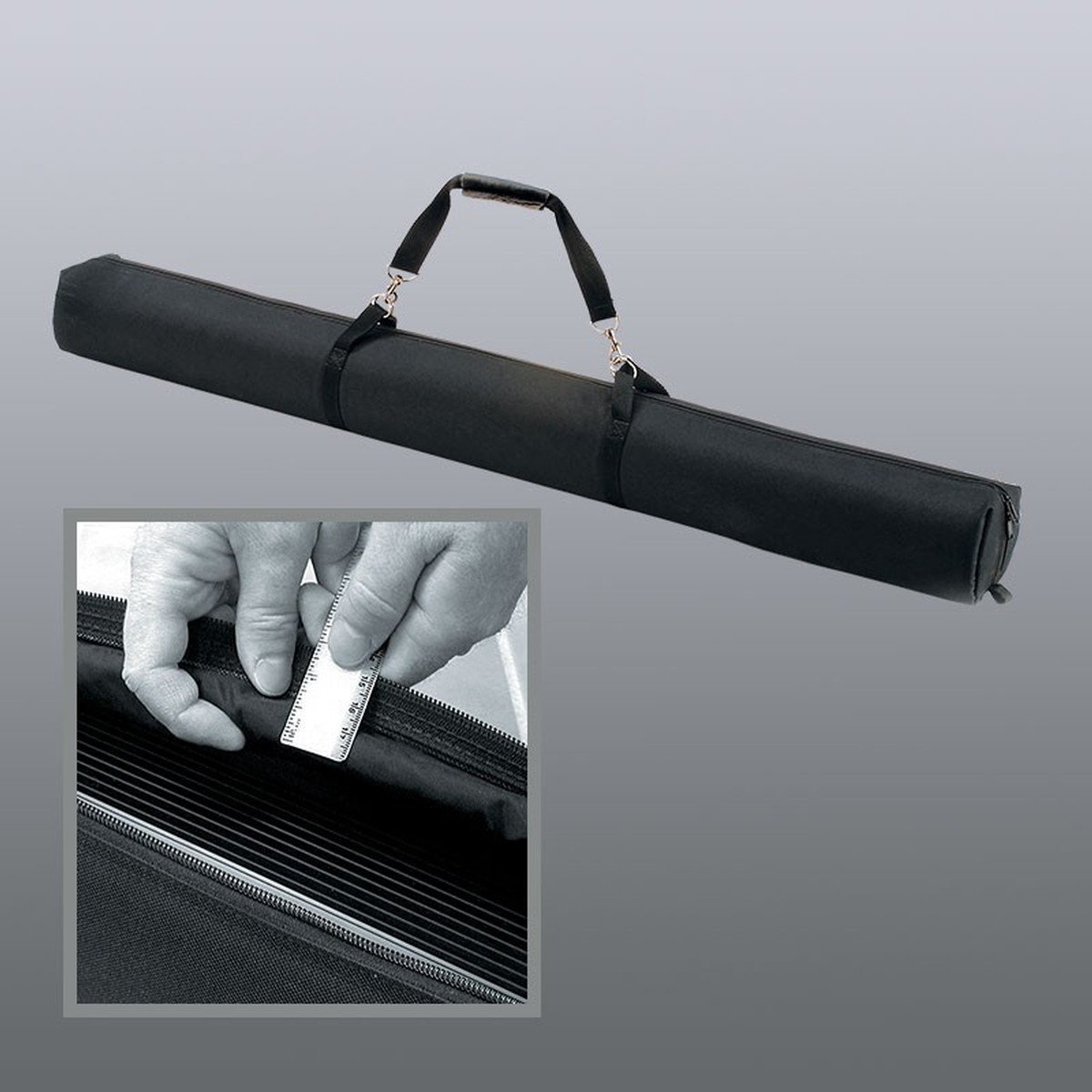 The Draper 230135 Traveller 25x40" Portable Front Projection Screen. Designed with today's traveling sales associate or mobile presenter in mind, this screen solution has a very modern appearance with a lightweight and clean simplified design. Weighing in at less than 15 pounds, the Traveller screen comes with the Matte White XT1000E screen surface material, an aspect ratio of 16:10, and 47" diagonal. Draper's Matt White XT1000E screen surface material offers a light diffusing ability that allows image on the screen to be viewed from all angles. Equally this screen material provides accurate color rendition and superior clarity due to its smooth, non-embossed surface. It does though require adequate provision for the control of ambient light in the audience area. This standard surface is specifically designed for today's computer presentations and high resolution requirements and includes a 3/4" black borders and 30" black "rise". With a new and improved design features a fast and easy set up with a telescoping support that locks with a twist to position the screen at the desired height on the floor or table top. The upright stores in the case. The Traveller is easy to carry in the durable, self-contained extruded aluminum case that has a black powder coat finish. It has a built-in carrying handle and includes a carrying strap. The Projection Screen is compatible with resolutions up to 1200 x 1600 and beyond and it has a broad viewing cone as well as accurate color rendition.