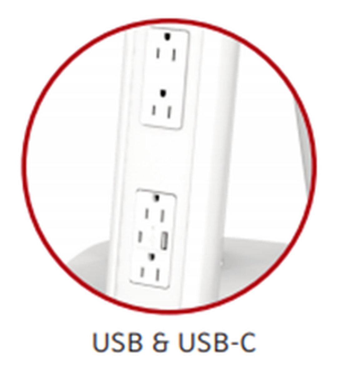 ECA introduces the Isle G2: an ergonomic, sleek charging station. The ISL-12U6A-S108 comes in a silver pearl color for an clean finish. Each leg of the table features two tamper-resistant outlets, for a total of 12 outlets per charging table. The tamper-resistant outlets are fitted with 3 USB and 3USB-C charging ports.