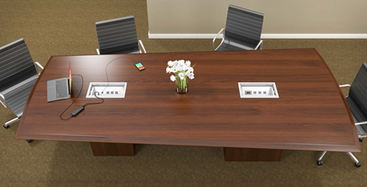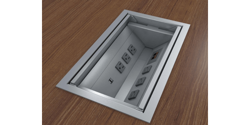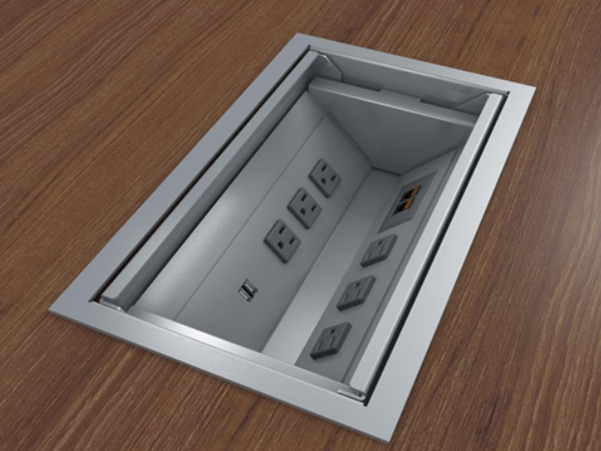 Table Well Box w/ Dual Slide Away Lids - 6 Power, 2 USB, 2 Data