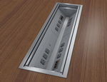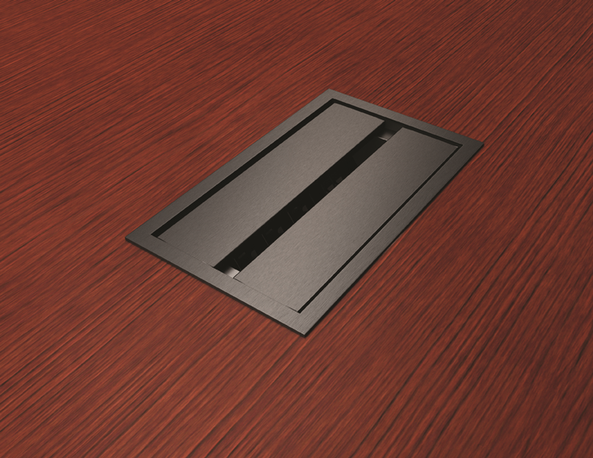 The ECA Oasis Mini is a stylish table box, the dual retracting slide away lids make for an elegant look while also leaving your table obstruction free from a lid.  The Oasis Mini mounts flush in your table, when the lids are closed there remains a small gap that allows cables to remain plugged in if needed.