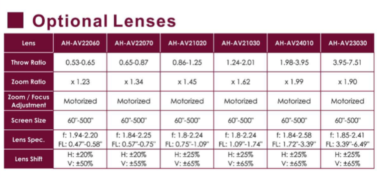 - Horizontal & Vertical Lens Shift. Wired network control.