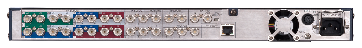 - 8K: 3G-SDI: BNC x2 (16 channels, 2 lines), SMPTE 299-1-compliant