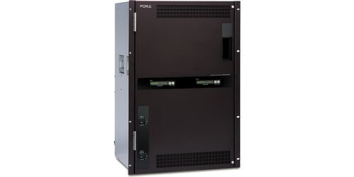 The FOR-A MFR-8000 Series 8RU Routing Switcher Case is highly configurable; supporting up to 256 inputs, 256 outputs, and 4 monitoring outputs. It comes with a primary CPU control board and power supply, but otherwise requires you to configure it with optional I/O cards. The unit, with optional I/O cards, supports SD, HD, 3G, and DVB ASI video signals and AES/EBU audio signals. Once the unit is configured with the options, it allows you crosspoint control functions; including button-assigned Salvo, Main unit storage Salvo, Take operation, Chop function, and monitor enable. The switcher supports combining multiple remote control units to make them act as a single large scale control panel. The switcher case supports an optional redundant CPU control board and power supply. Control of the switcher is through either Ethernet or RS-232/RS-422 serial control. The switcher case is rackmountable using the included rackmount clips.